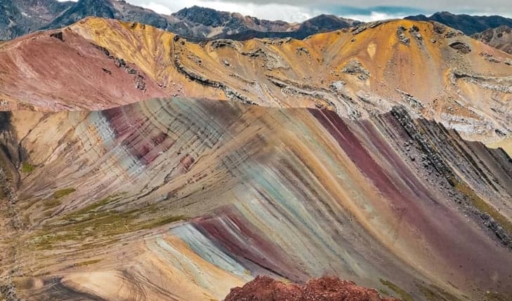 La Montaña de 7 Colores de Palccoyo es conocida por sus impresionantes estratos de colores, que son el resultado de la exposición de diferentes capas de sedimentos a lo largo de miles de años. Entre los colores que se pueden observar en la montaña se incluyen: