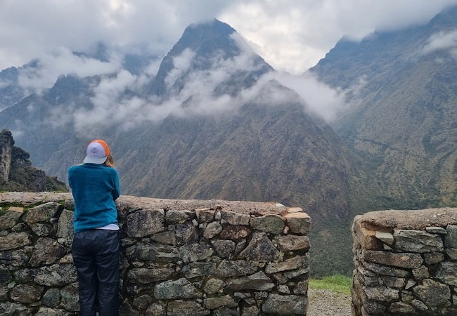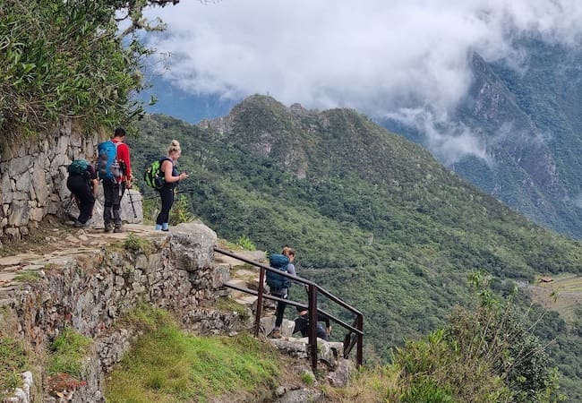 Continúa el recorrido entre un bosque nuboso y las vistas a las cadenas de montañas, hasta el sitio arqueológico más grande del Camino Inca, Sayacmarca, conocido como Pueblo en un Lugar Empinado.