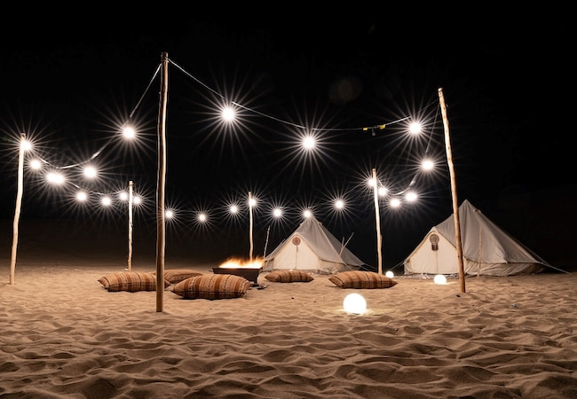 El área de reuniones va a estar equipada de todo lo que necesitas para pasar una velada maravillosa, equipada con cojines alrededor de la fogata grupal, mesas privadas por carpa, iluminación en zonas específicas y esferas con luces led, brindando un ambiente sin igual. Las carpas están cuidadas en cada detalle para que puedas disfrutar de un sueño reparador, con materiales aislantes y suaves para dormir cómodamente.