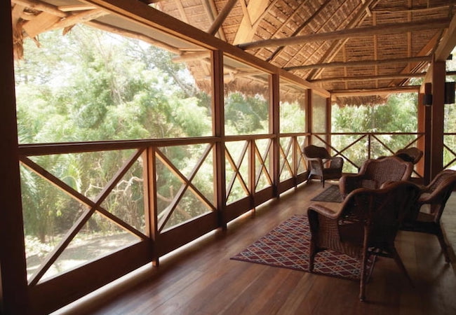 Después, inicia tu exploración por el bosque lluvioso a pie, comenzando desde el Centro Ecológico, y recorre los senderos Concepción, que atraviesan la propiedad, para vivir una experiencia directa con los complejos ecosistemas amazónicos. Ubicado junto a la Reserva Nacional Tambopata, el lodge está construido sobre una antigua plantación de cacao y caucho, y alberga bosques primarios y secundarios llenos de vida silvestre exótica y plantas tropicales.