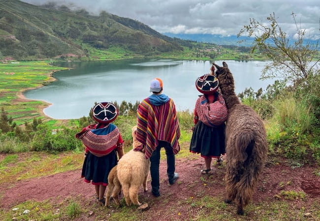 Descubra a magia dos Andes com nossa caminhada única ao lado de lhamas e alpacas. Desde a impressionante lagoa de Piuray até a ancestral Trilha Inca, esta experiência mergulha você em paisagens inesquecíveis. Além disso, você poderá explorar a comunidade de Chinchero, conhecer os moradores e se maravilhar com seu parque arqueológico. Esta visita a Chinchero e suas atividades devem ser solicitadas com antecedência no momento da reserva.